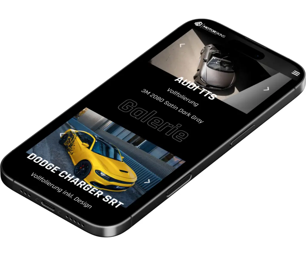 Für Motorskins durften wir den kompletten Online-Auftritt konzipieren, gestalten und technisch umsetzen. Unser Ziel: Eine Website, die die Präzision und Leidenschaft hinter jeder Fahrzeugfolierung auch online widerspiegelt – klar strukturiert, modern im Look und stark im Ausdruck.